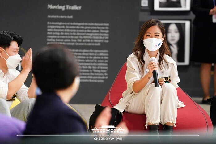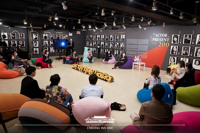 제76차 유엔 총회를 계기로 문재인 대통령과 함께 뉴욕을 방문했던 김정숙 여사는 21일 오전(현지시각), 뉴욕 차세대 한인 청년들을 만나 K-컬쳐의 현재와 미래에 대한 간담회를 가졌다.