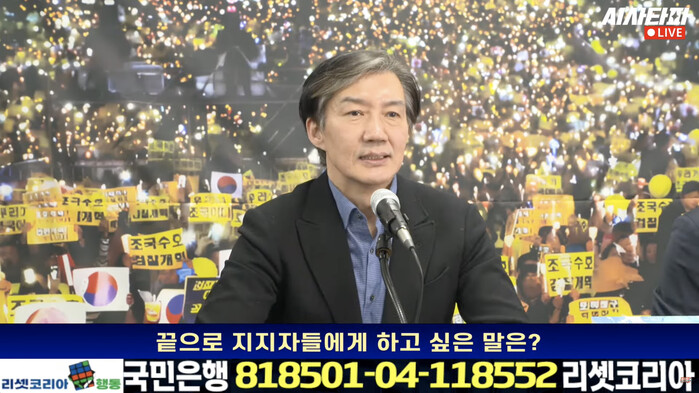 조국) 시사타파TV와 개국본 회원 여러분. 2019년 이후부터 많은 시간이 지났습니다. 5년이 지났는데 그 긴 기간 동안 부족한 저를 지켜봐 주시고, 또 손잡아주시고 위로해 주신 것 정말 감사하게 생각합니다.