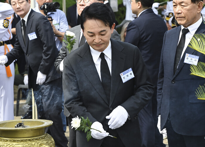 ▲헌화하는 원희룡 후보 (사진=연합뉴스)