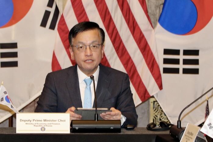 회담 시작에 앞선 모두 발언 세션에서 최상목 부총리는 "최근 몇 년간 우리는 지정학적 긴장과 충돌이 갈수록 복잡화·일상화되며 세계 경제에 지속적인 충격을 주는 것을 목도해왔다"며 "실물경제의 불실성이 초래할 수 있는 금융 측면의 불안에 대해 (한미일) 3국이 협력해 적극 대응할 필요가 있다"고 말했다.