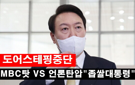 윤석열 대통령이 21일 “MBC 기자-비서관 설전”으로 도어스테핑(출근길 문답)을 잠정 중단했다. 21일 오전 9시 1분에 용산 대통령실 청사 1층으로 도착한 후, 기자들을 만나지 않고 곧장 집무실로 향했다. 대통령실은 평소 출근길 문답이 진행되던 청사 1층 로비에 나무 합판으로 만든 가림막도 전날 세웠다.