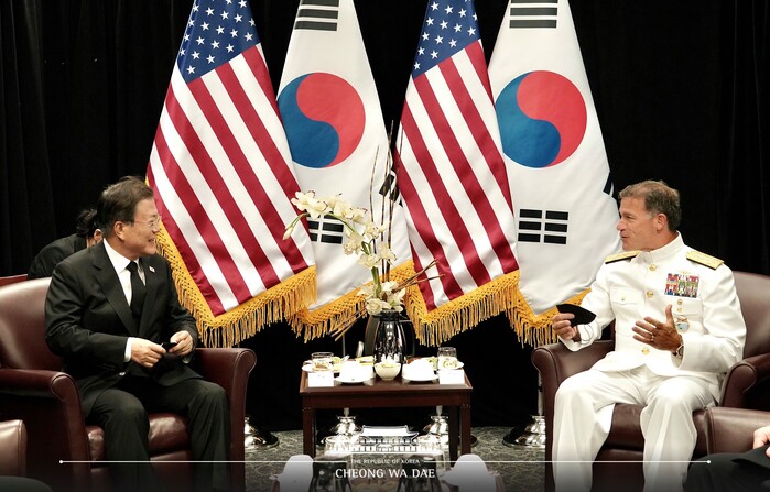 문재인 대통령은 22일 오후(현지 시각), 하와이 호놀룰루 히캄 공군기지에서 존 아퀼리노(John C. Aquilino) 미국 인도태평양사령관을 접견했다.