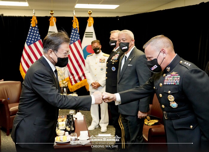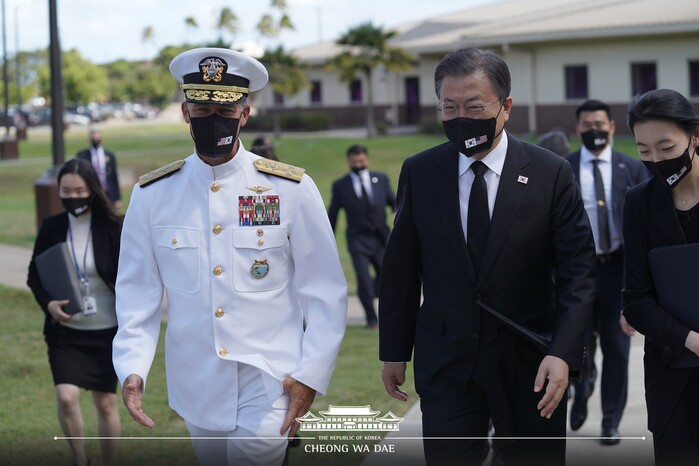 또한, 문 대통령은 “한반도의 완전한 비핵화와 영구적 평화를 위해서 필요한 외교와 대화에는 강한 안보가 뒷받침되어야 하는데, 여기서 중요한 역할을 하는 게 인도태평양 사령부”라면서, “아퀼리노 사령관과 병사들의 노고에 감사드리며, 앞으로 한미 연합 방위 능력을 더욱 높여 나가기 바란다”고 말했다.