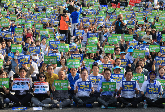 '일본 방사성오염수 해양투기저지 공동행동'과 야 3당이 함께 '후쿠시마 핵오염수 해양투기 중단·윤석열 정부 규탄 2차 범국민대회'를 열었다.