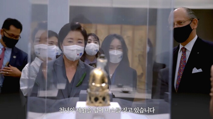 제76차 유엔 총회를 계기로 문재인 대통령과 뉴욕을 방문 중인 김정숙 여사는 9월 20일 오후(현지시각), 미래세대와 문화를 위한 대통령 특별사절로 임명된 BTS와 메트로폴리탄 미술관 한국실을 방문했다.