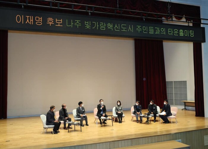 광주전남혁신도시 나주 빛가람에서 주민들을 뵀습니다. 빛가람을 찾을 때마다 우리가 직면한 에너지대전환의 기회를 봅니다. 한국에너지공과대학이 내년 개교를 앞뒀고, 한국전력을 비롯한 에너지 공기업이 위치한 곳입니다.