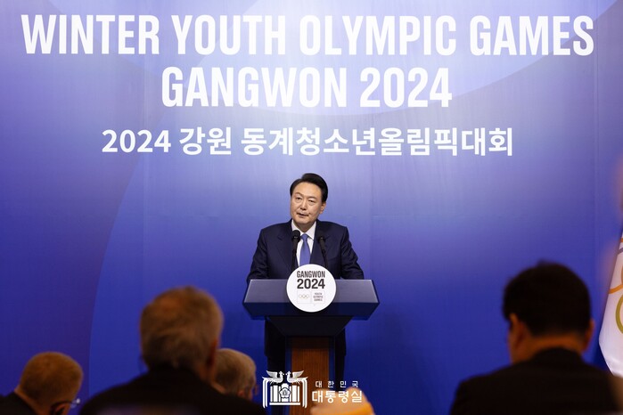 | ▲강원 동계청소년올림픽 축사하는 대통령 (사진=대통령실) |