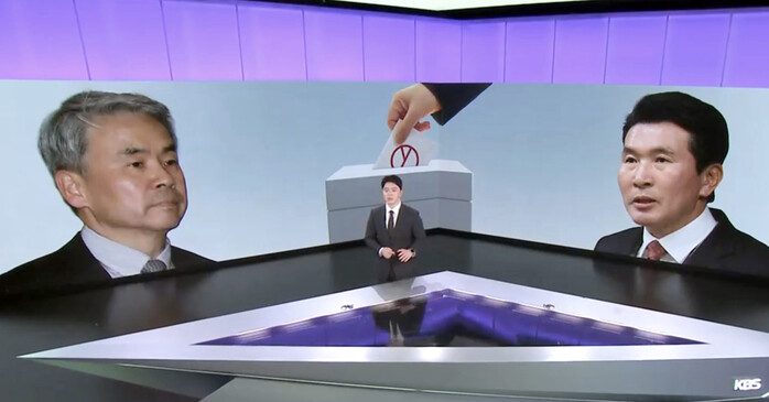| ▲지역구 투표 결과 예측 보도 KBS 유튜브 화면 캡쳐 |