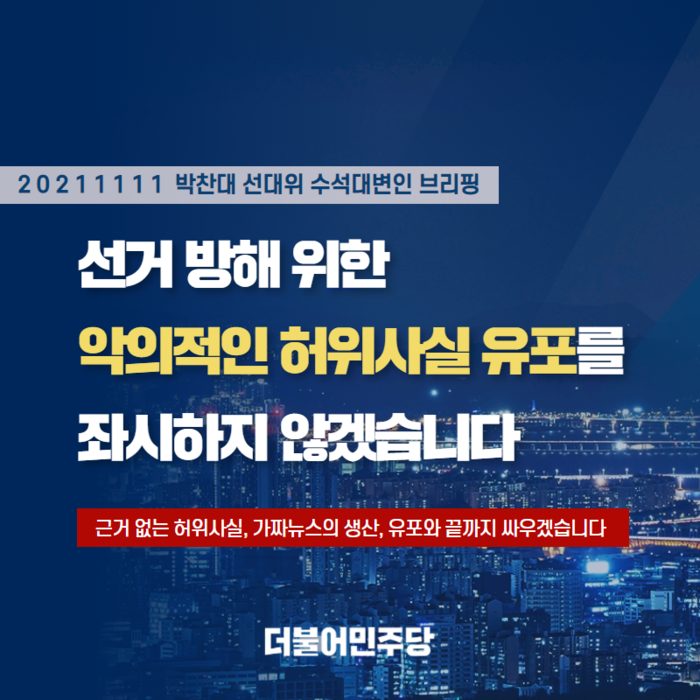 -더불어민주당 '허위사실과 가짜뉴스" 는 "법적조치 비롯해 강력히 대응" 결정.
