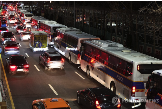 | ▲ 9일 오후 한남동 관저 인근 줄지어 서있는 경찰버스 (사진=연합뉴스) |