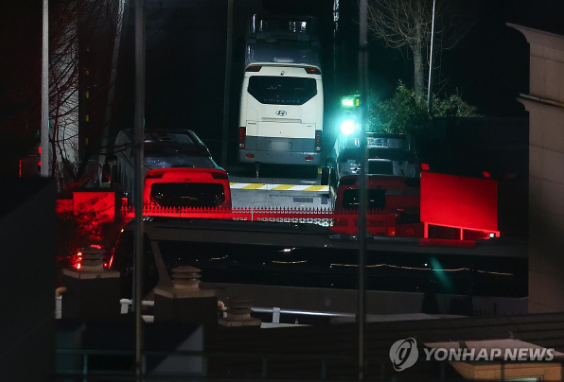 | ▲ 9일 밤 한남동 관저 앞 출입문 막은 버스 (사진=연합뉴스) |