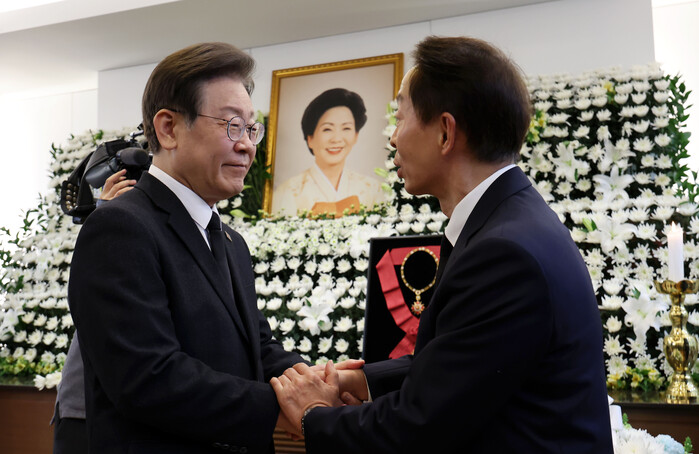 | ▲ 김현철 김영삼대통령기념재단 이사장과 인사하는 이재명대표 (사진=연합뉴스) |