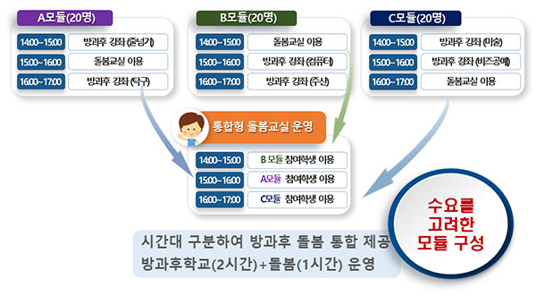 하지만 학생과 학부모 수요를 반영한 방과후학교·돌봄 통합 프로그램 구성으로 학생의 참여를 높이고 적절한 휴식과 함께 안정적으로 방과후학교 강좌 수강과 돌봄이 가능해진다.