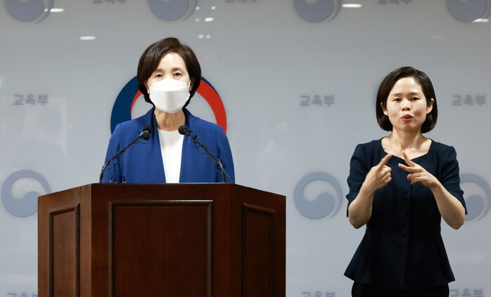 | ▲ 유은혜 사회부총리부 겸 교육장관이 세종시 정부세종청사에서 초등 돌봄교실 운영 개선 방안과 관련해 브리핑, 교육부 |