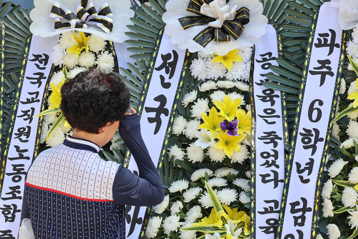 조 교육감은 "혹여라도 선생님이 고통받은 부분이 있으면 철저히 조사할 테니 걱정하지 마시라"며 "인터넷에서 악성 루머를 퍼뜨리는 나쁜 사람들도 있는데 철저히 조사해서 고인의 가시는 길이 아름답게 하겠다"고 말했다.