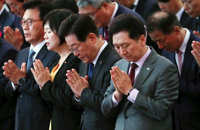 | ▲부처님 오신날 행사에서 만난 여야대표 (사진 출처=이재명 페이스북) |