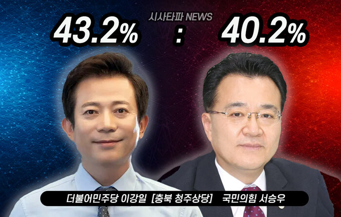미디어리처치와 뉴스핌이 조사한 청주상당의 29일 여론조사 결과는 이강일 더불어민주당 후보가 43.2%, 서승우 국민의힘 후보가 40.2%로 오차 범위내에서 초접전을 벌이고 있는 모습을 드러냈다.