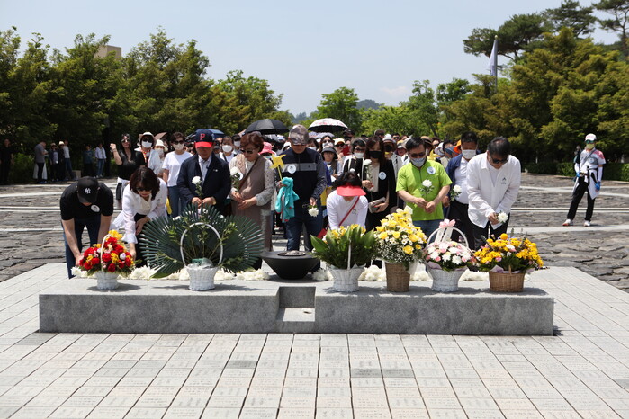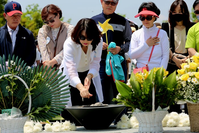 | ▲분향하고 있는 개국본 전미영 공동대표 |