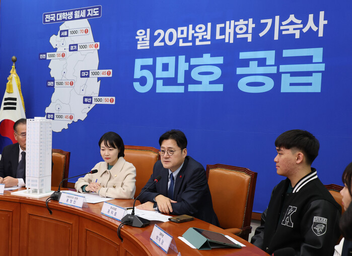 | ▲ 월 20만원대 대학기숙사 공급 정책 발표하는 민주당 (사진=연합뉴스) |