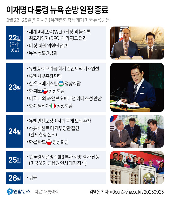 | ▲ 이재명 대통령 뉴욕 순방 일정 종료 (제공=연합뉴스) |