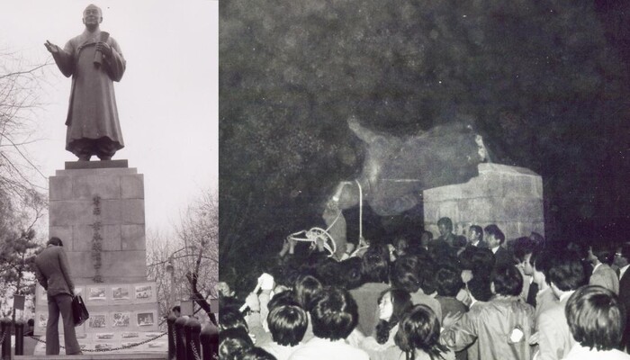 | ▲인하대에 설치됐던 이승만 전 대통령과 1984년 철거 장면 (사진=인하대) |