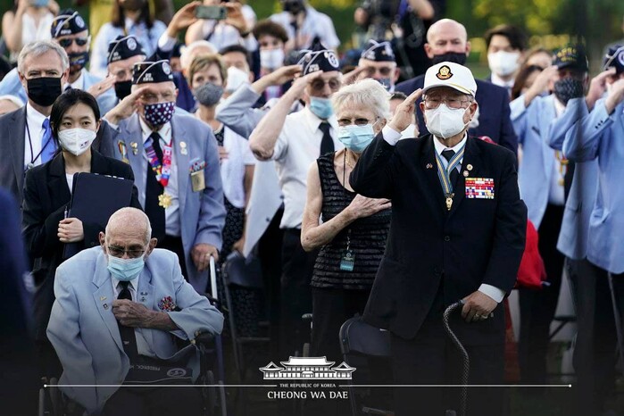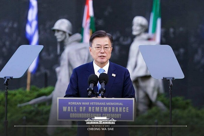아울러 문 대통령은 "2018년 나는 유엔 참전용사들께 추모의 벽 건립을 약속드렸고 3년이 지난 오늘 드디어 그 약속을 지키게 되어 감회가 매우 깊다"며 용사들의 희생이 결코 헛되지 않았다는 것을 대한민국 대통령으로서 분명히 말씀드린다고 강조했다.
