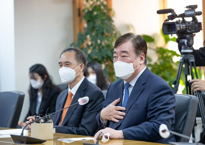 최근 중국의 수출 제한 조치로 국내 요소수 품귀현상이 일어나는 등 국민들께서 상당한 혼란을 겪고 있는 점을 말씀드렸습니다. 다행히 우리 정부가 백방으로 노력하여 일정 부분 진전이 있다는 소식도 들려오고 있습니다. 싱하이밍 대사께 국내 요소수 사태에 대한 각별한 관심과 협조를 당부드렸습니다.