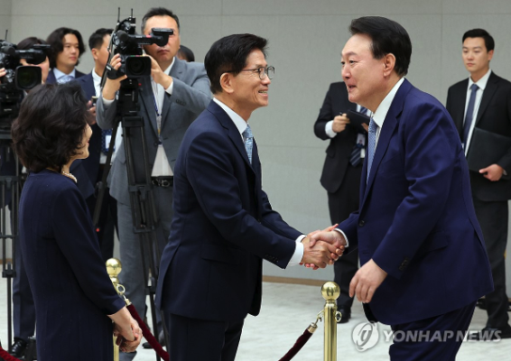 | ▲ 김문수 국민의힘 대선 후보와 윤석열. 사진은 고용노동부 장관 임명장 수여식. 2024.8.30 (사진=연합뉴스) |