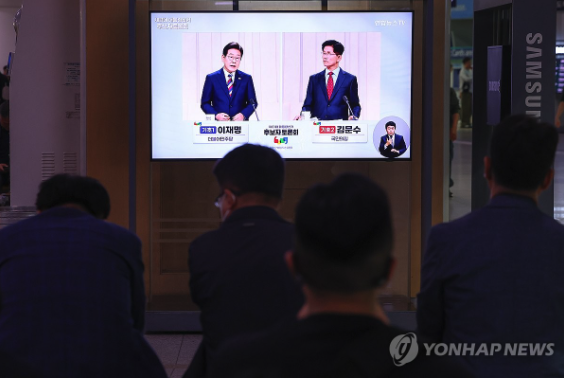 | ▲ 제21대 대통령선거 후보 정치분야 TV토론회가 열린 27일 서울역 대합실에서 시민들이 토론회 중계방송을 지켜보고 있다. 2025.5.27 (사진=연합뉴스) |