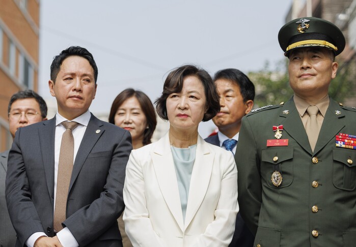 | ▲박정훈 대령 5차 공판에 함께 한 임태훈 군 인권센터장과 추미애 의원 (사진=연합뉴스) |