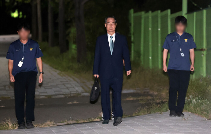 | ▲ 윤석열의 내란 방조 및 위증 등 혐의를 받는 한덕수 전 국무총리가 27일 구속영장이 기각돼 경기도 의왕 서울구치소를 나서고 있다. 2025.8.27 (사진=연합뉴스) |