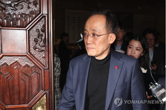 | ▲ 국민의힘 추경호 원내대표가 4일 밤 서울 여의도 국회에서 열린 비공개 비상 의원총회에 참석하고 있다. 2024.12.4 (사진=연합뉴스) |