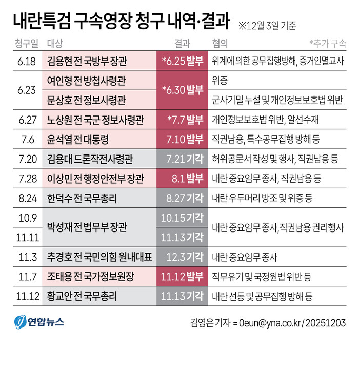 12·3 비상계엄 당시 국회의 계엄 해제 표결을 방해한 혐의(내란중요임무종사)를 받는 국민의힘 추경호 의원에 대한 구속영장이 3일 새벽 기각됐다. 이로써 조은석 특별검사팀의 6개월 내란 수사는 주요 피의자들에 대한 신병 확보에 잇따라 실패하며 사실상 마무리 단계에 접어들었다는 평가가 나온다.