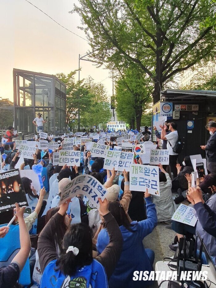 이날 집회참가자들은 "검찰 개혁을 이뤄내자, 민주당은 할 수 있다. 박병석은 정신차려 등 구호를 외쳤다.