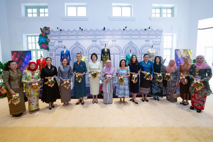 김 여사는 유네스코 인류무형문화유산에 등재된 전통의상 ‘끄바야’ 전시를 관람하며 “우리 한복과는 또 다른 아름다움이 있다”고 감탄을 표했다.