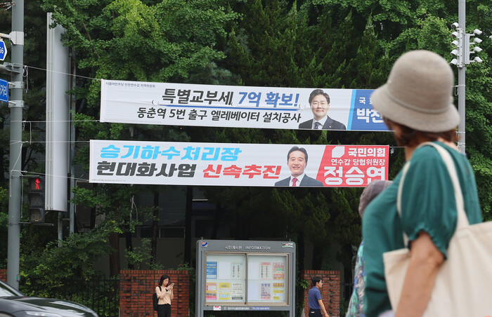 지난해 정당 현수막 게재 관련 제한을 없앤 옥외광고물법 개정 이후 원색적 문구를 담은 현수막이 난립하면서 재개정을 요구하는 목소리가 잇따르는 상황이다.
