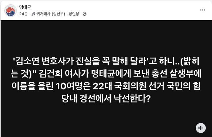 특검에서 이틀간의 강도 높은 조사를 받고 나온 명태균씨는 4일 밤, 자신의 페이스북을 통해 그야말로 '핵폭탄급' 폭로를 감행했다. 그는 "김건희 여사는 명태균에게 총선 살생부 명단을 보냈다. 황금폰에 증거가 그대로 남아있다"고 밝혔다. 이는 지난 총선 공천 과정에 김건희가 직접 개입해 특정 인물들을 탈락시키려 했다는 '총선 농단'의 실체가 존재함을 암시하는 것이다.