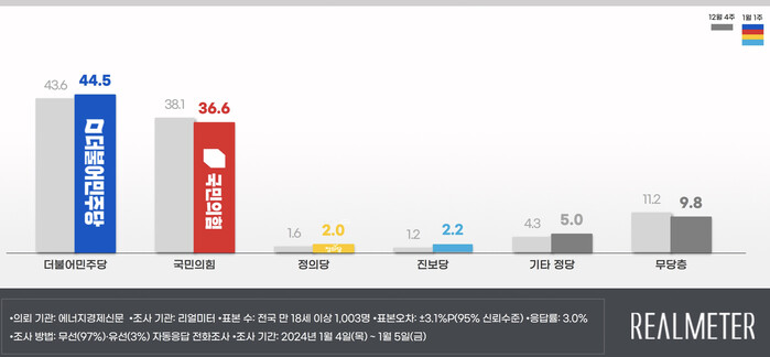 | ▲정당지지율 여론조사 (이미지=리얼미터) |