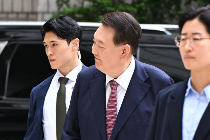 | ▲ 윤석열이 서울 서초구 서울중앙지방법원에서 열린 내란 우두머리 혐의·직권남용 권리행사 방해 혐의 사건 9차 공판에 출석하고 있다. 2025.7.3 (사진=연합뉴스) |