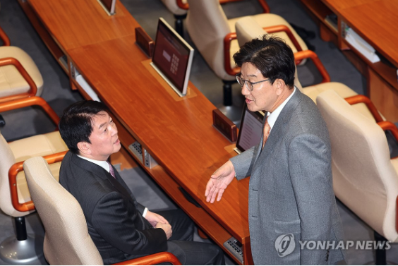| ▲ 국민의힘 권성동 신임 원내대표가 13일 오후 국회에서 열린 본회의에 참석해 안철수 의원과 대화하고 있다. 2024.12.13 (사진=연합뉴스) |