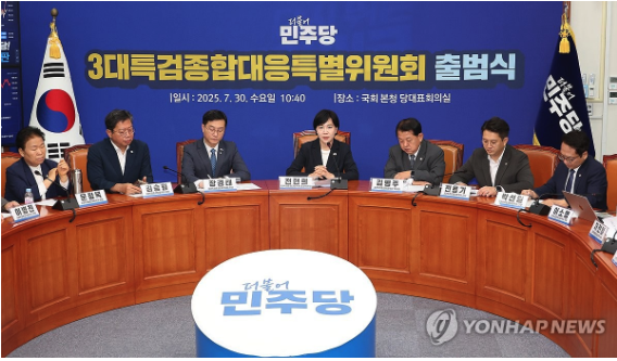 | ▲ 30일 서울 여의도 국회에서 열린 더불어민주당 3대특검 종합대응특별위원회 출범식에서 전현희 총괄위원장이 발언하고 있다. (사진=연합뉴스) |