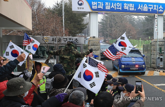 | ▲ 윤석열이 구속돼있는 서울구치소 앞에서 태극기 흔드는 탄핵반대 세력 (사진=연합뉴스) |
