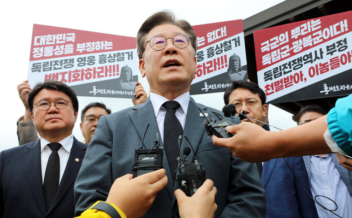 한편, 홍범도 등 광복 전쟁영웅 흉상 철거는 국민 편 가르기, 이념전쟁용 부관참시, 매국행위라는 이 대표의 지적과 상관없이 대통령실은 "윤석열 대통령은 홍범도 문제에 관해 본인의 생각을 이야기한 적이 없다"고 말했다.