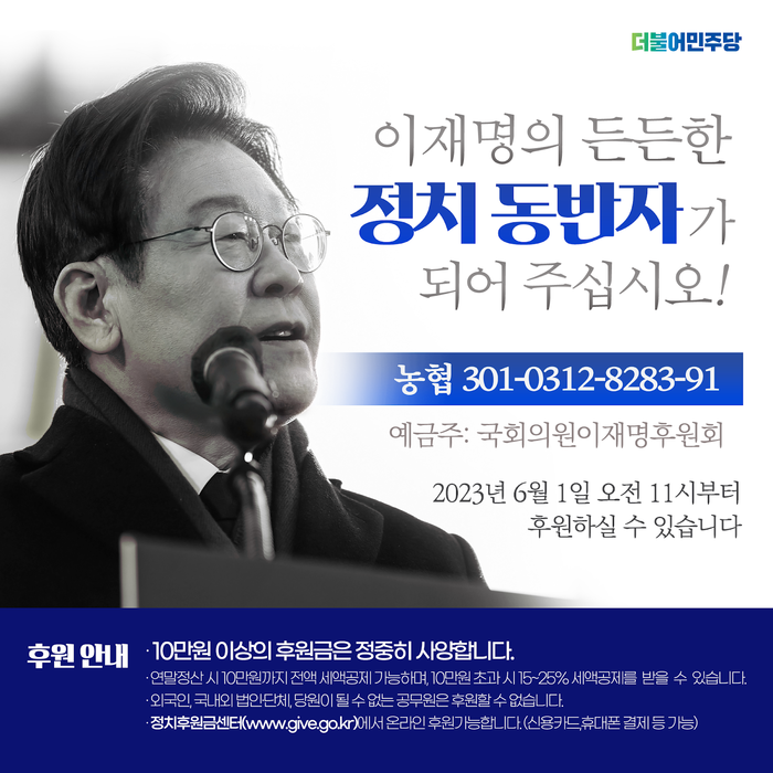 | ▲더불어민주당 이재명 대표의 후원회 오픈 홍보 포스터 |