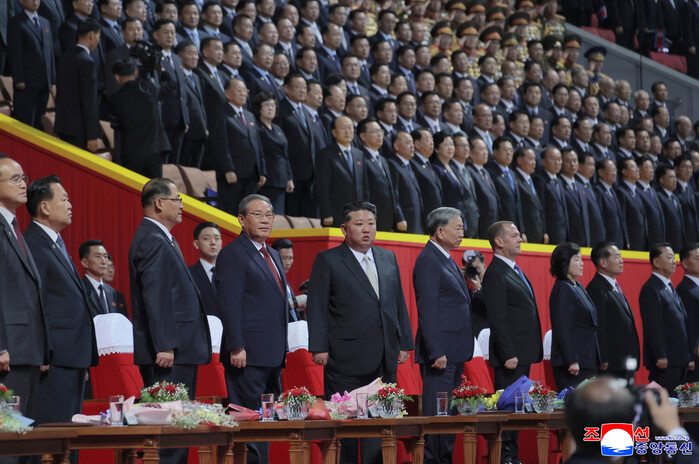 김 위원장은 또한 러시아와의 연대를 과시하며 드미트리 메드베데프 러시아 국가안보회의 부의장 등 외빈을 소개했다. 그는 “우리 당과 공화국 정부는 강위력한 혁명무력과 함께 부정의와 패권을 반대하고 정의와 평화를 수호하는 진보적 인류의 공동투쟁에서 책임을 다할 것”이라고 밝혔다.