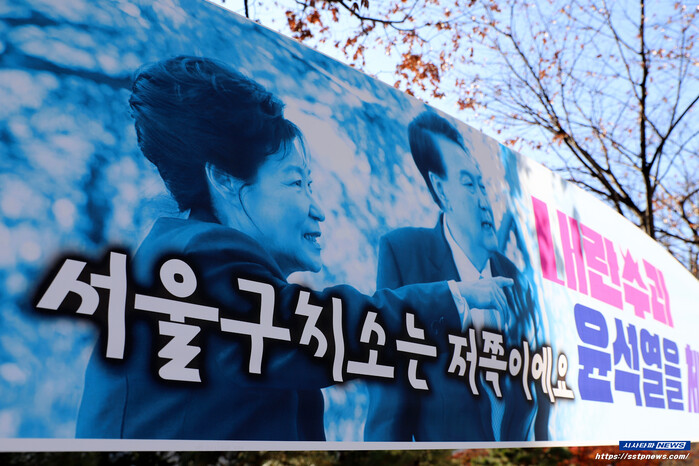 | ▲ 집회 현수막으로 탄생한 윤석열 탄핵 풍자 밈 (사진=시사타파뉴스 박성규 기자) |