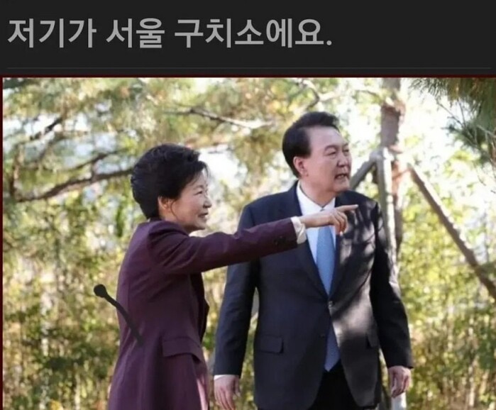 당시 누리꾼들은 윤 대통령이 박 전 대통령과 마주 보고 앉아 있는 사진을 공유했다. 사진 속 박 전 대통령은 “나도 (계엄은) 생각만 했어”라는 대사가 적혀 있었다.