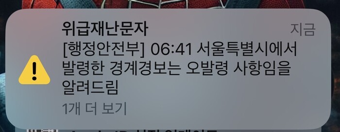 | ▲ 행안부가 서울시의 문자가 잘못 됐음을 위급재난문자를 통해 정정했다 (화면 캡쳐=시사타파뉴스) |