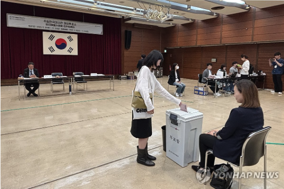 | ▲ 제21대 대통령 선거 재외투표 첫날인 20일 일본 도쿄 미나토구 주일한국대사관에 마련된 재외투표소. 2025.5.20 (사진=연합뉴스) |