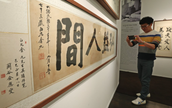 | ▲ 백범 김구 주석의 휘호 '홍익인간' (사진=연합뉴스) |